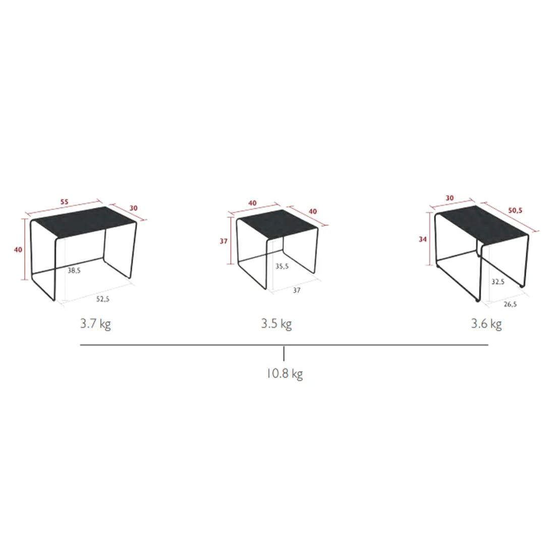 Das robuste Gestell-Material des Beistelltischs besteht aus Stahl. Die Tischplatte ist aus Stahlblech gefertigt und dadurch für den Einsatz auf der Terrasse, im Garten und auf dem Balkon geeignet. Die rechteckige Form ermöglicht es Ihnen, den Beistelltisch in Ecken und an Häuserwänden platzsparend einzusetzen.