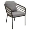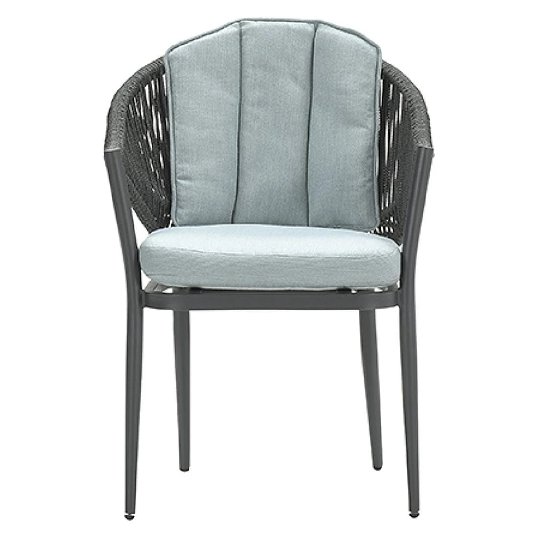 Das Gestell wird aus Aluminium gefertigt. Das geringe Eigengewicht des Materials macht den Gartensessel zu einem robusten, aber dennoch leicht zu transportierenden Sitzmöbel auf Ihrer Terrasse. Für eine attraktive Optik ist das Gestell im Farbton Carbon Black gehalten. Die Sitzfläche des Gartensessels ist angenehm aufgepolstert. Die Farbgestaltung der Sitzfläche in Mint Grey ist überaus ansprechend. Das klassische Vierfuß-Gestell garantiert Ihnen einen sicheren Stand.