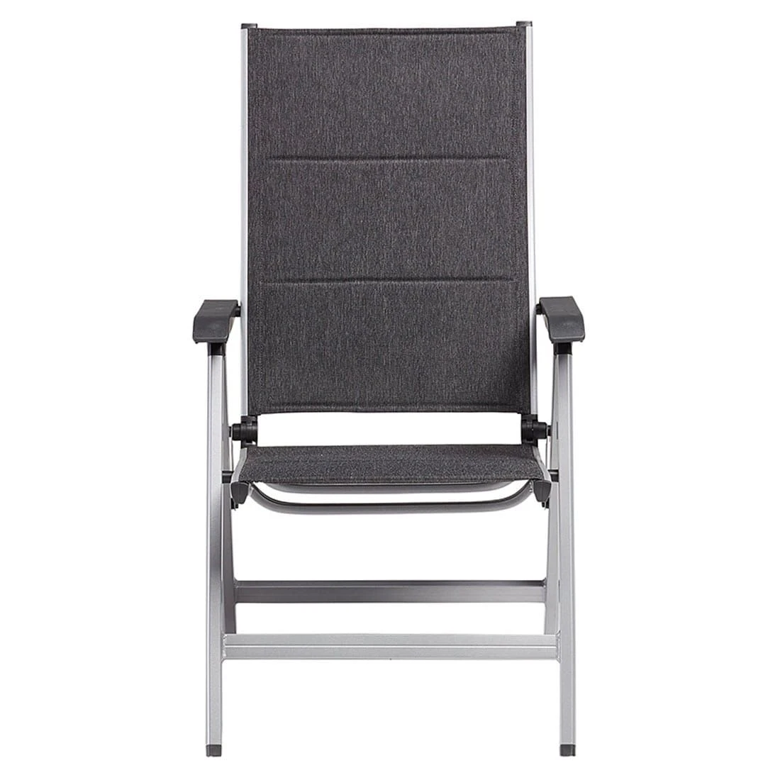 Für die Herstellung des Gestells wird hochwertiges und wetterfestes Aluminium verwendet. Für eine attraktive Optik ist das Gestell im Farbton Silber gehalten. Ein weiteres Highlight des Klappsessels ist die Bespannung mit Textilene. Dieser Bezugsstoff überzeugt durch eine hohe Robustheit gegenüber Hitze und Frost und ist leicht zu reinigen. Die Sitzfläche hat eine attraktive Farbgebung in Anthrazit-Meliert.