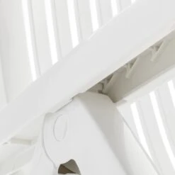 Der Klappsessel begeistert damit, dass das Gestell und die Sitzfläche aus Kunststoff gefertigt sind. Dies erzeugt nicht nur ein elegantes, sondern auch einheitliches Bild des attraktiven Möbels. Für ein perfekt stimmiges Gesamtbild sorgt die einheitliche Farbgebung in stilvollem Weiß.