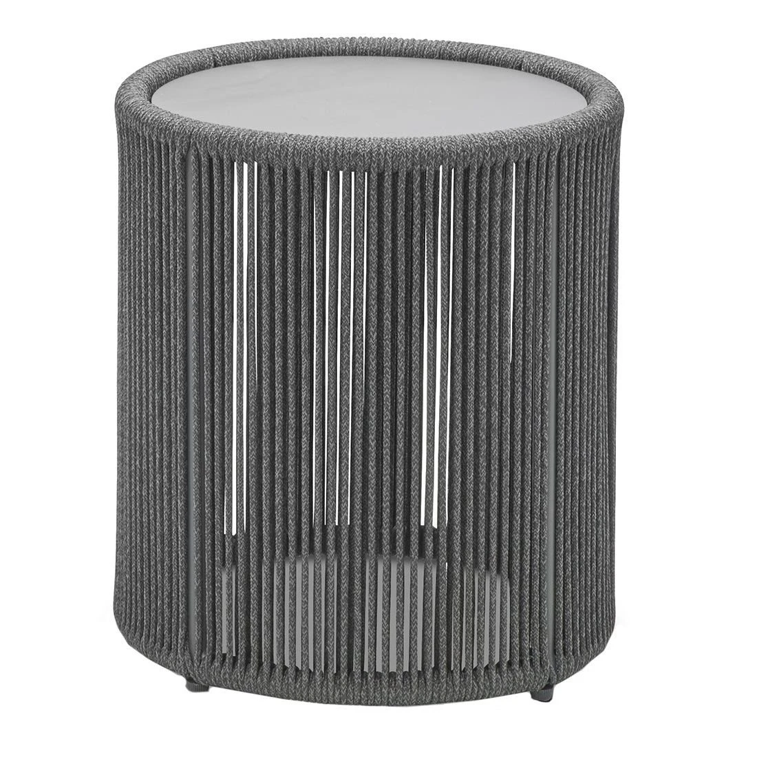Das Tischgestell in Säulenform ist nicht nur ein wahrer Eyecatcher, sondern auch ein Garant für ausreichend große Beinfreiheit. Sowohl die Tischplatte als auch das Gestell sind aus Aluminium gefertigt. Farblich ist die Platte in Anthrazit gehalten. Der Beistelltisch ist in seinem Design klassisch rund gestaltet.