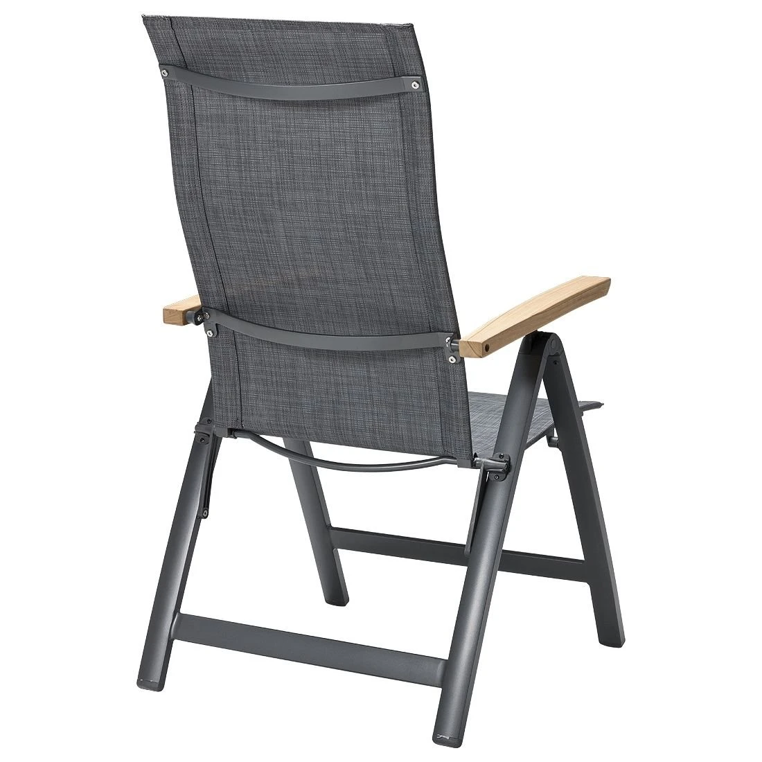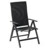 Für die Herstellung des Gestells wird hochwertiges und wetterfestes Aluminium verwendet. Für eine attraktive Optik ist das Gestell im Farbton Anthrazit gehalten. Für die Bespannung der Sitzfläche verlässt sich der Hersteller auf hochwertiges Textilene. Es zeichnet sich durch eine hohe Robustheit gegenüber Hitze und Frost aus und ist leicht zu reinigen. Die Sitzfläche hat eine schöne Farbgebung in Grau.