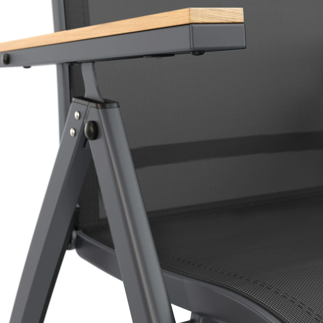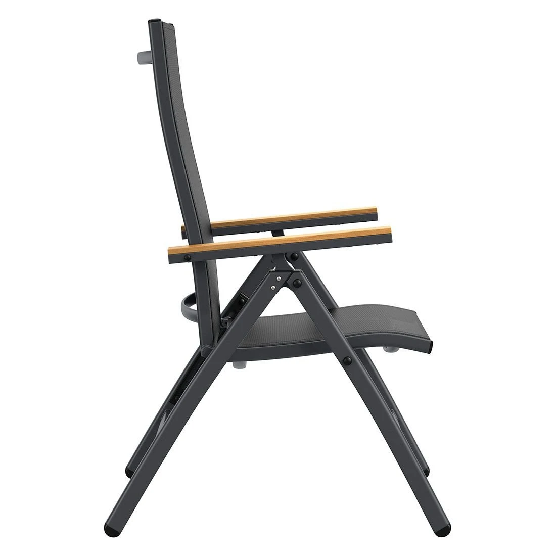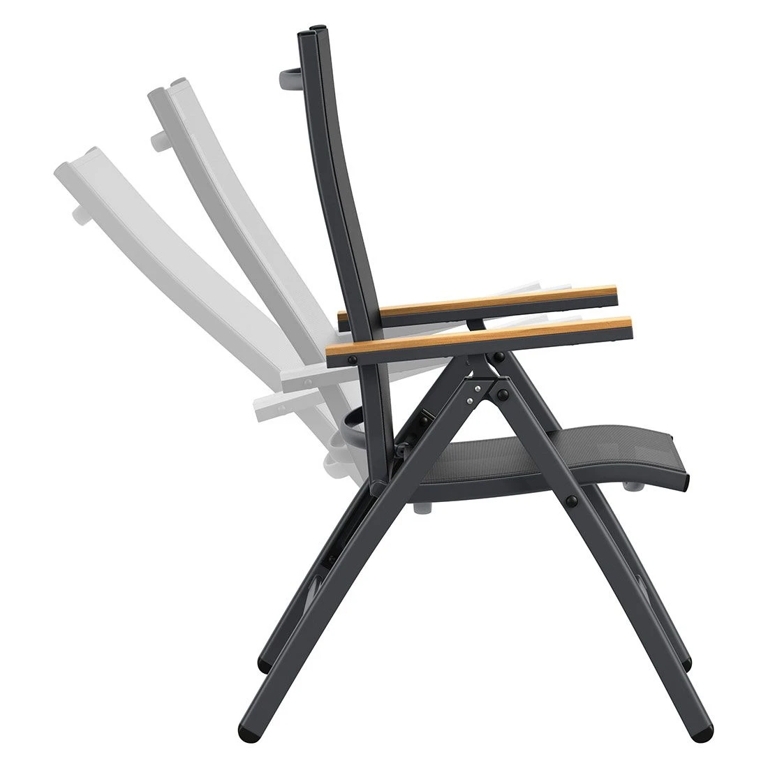 Das Gestell wird aus Aluminium gefertigt. Das geringe Eigengewicht des Materials macht den Klappsessel zu einem robusten, aber dennoch leicht zu transportierenden Sitzmöbel auf Ihrer Terrasse. Für die Bespannung der Sitzfläche verlässt sich der Hersteller auf hochwertiges Textilene. Es zeichnet sich durch eine hohe Robustheit gegenüber Hitze und Frost aus und ist leicht zu reinigen. Für ein perfekt stimmiges Gesamtbild sorgt die einheitliche Farbgebung in stilvollem Anthrazit.