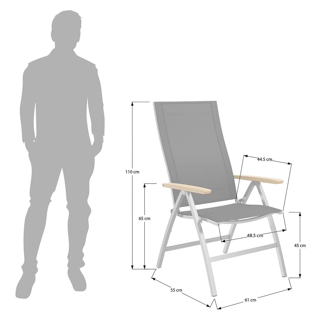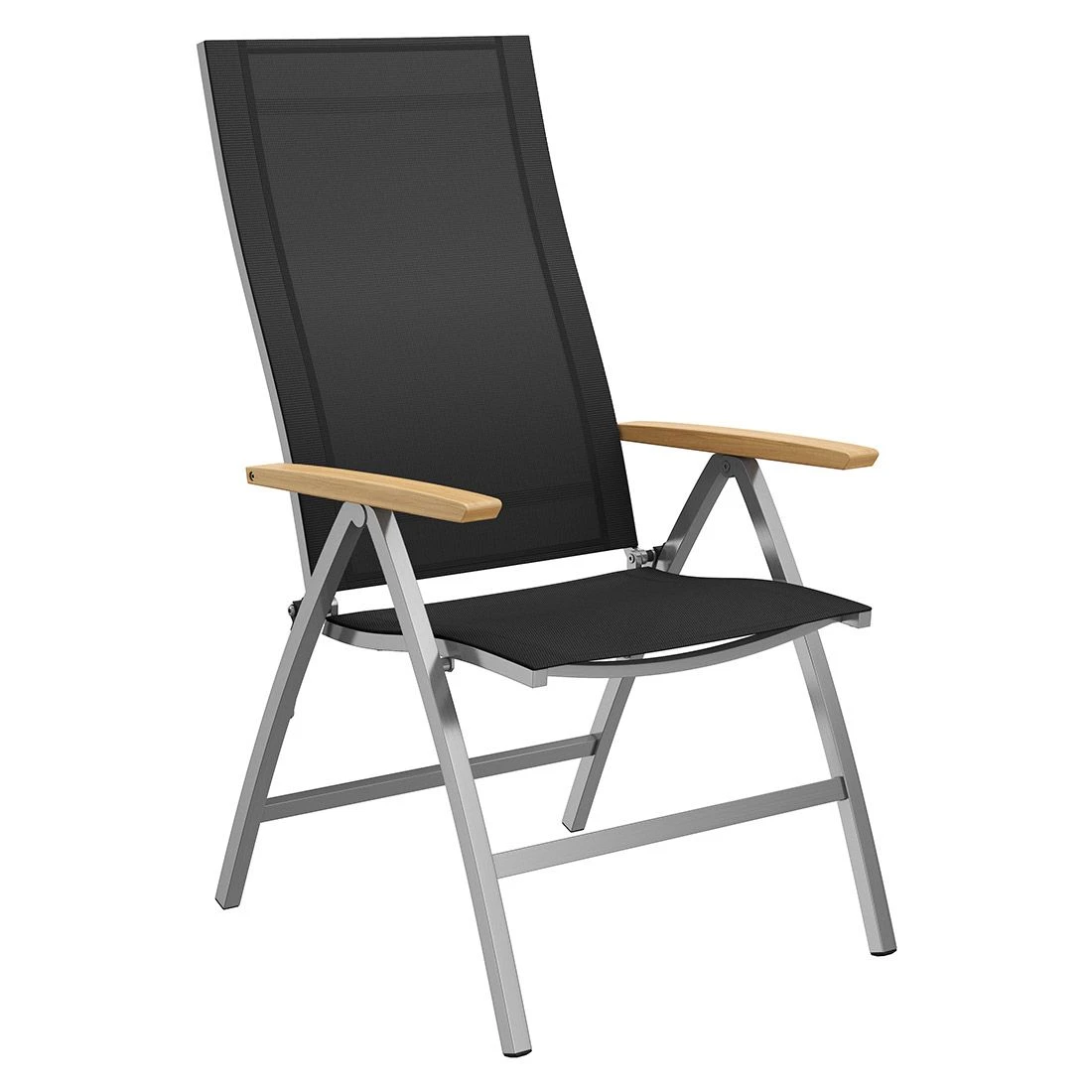 Für die Bespannung der Sitzfläche verlässt sich der Hersteller auf hochwertiges Textilene. Es zeichnet sich durch eine hohe Robustheit gegenüber Hitze und Frost aus und ist leicht zu reinigen. Die Klappbarkeit ermöglicht es, den Klappsessel bei Nicht-Benutzung oder im Winter kompakt einzulagern. Der Klappsessel ist verstellbar und kann daher nach Belieben eingestellt werden. Der Klappsessel hält auch stärkeren Belastungen (bis 150 kg) stand. Der hohe Sitzkomfort ergibt sich auch aus der Sitzbreite von 48,5 cm und einer Sitztiefe von 44,5 cm. Unterstützt wird dies zudem durch die bequeme Sitzhöhe von 45 cm.