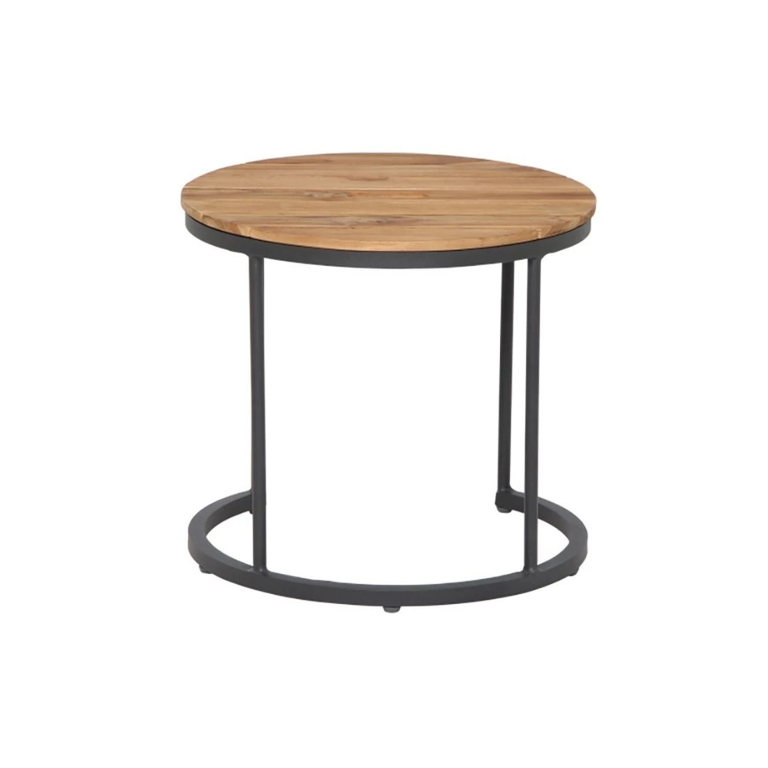 Das Gestell des leichten Tisches besteht aus Aluminium. Ein stabiler Unterbau und dabei gleichzeitig dekorativ ist das Säulengestell. Als Material für die Tischplatte wird das wertvolle Hartholz Teak verwendet. Die Maserung des Holzes und der gemütliche Farbton integrieren sich äußerst gut in jegliche Arten der Garten- und Balkongestaltung und verbreiten eine einzigartig natürliche Atmosphäre. Farblich ist die Platte in Teak Natur gehalten. Der Beistelltisch ist in seinem Design klassisch rund gefertigt.
