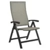 Ein weiteres Highlight des Klappsessels ist die Bespannung mit Textilene in der Farbe Dark Grey. Dieser Bezugsstoff überzeugt durch eine hohe Robustheit gegenüber Hitze und Frost aus und ist leicht zu reinigen. Nur wenig Platz, um den Klappsessel im Winter einzulagern? Kein Problem, denn dieses Möbelstück ist klappbar und somit kompakt zu verstauen. Dank der Verwendung von hochwertigen Materialien ist der Klappsessel überaus robust und hält einer Belastung von 120 kg hervorragend stand.